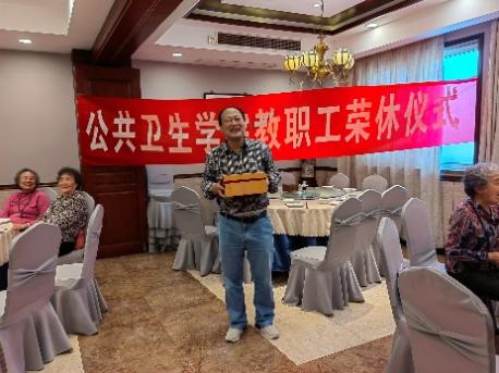 上午参观结束后,院工会为我们今年退休的老党员钟宏良同志举行了荣休仪式并为钟宏良同志赠送了荣休纪念品,党委陈赞书记代表学院对钟老师四十多年来为学院兢兢业业的辛勤工作表示了感谢。钟老师也深情回忆了多年来的工作历程。