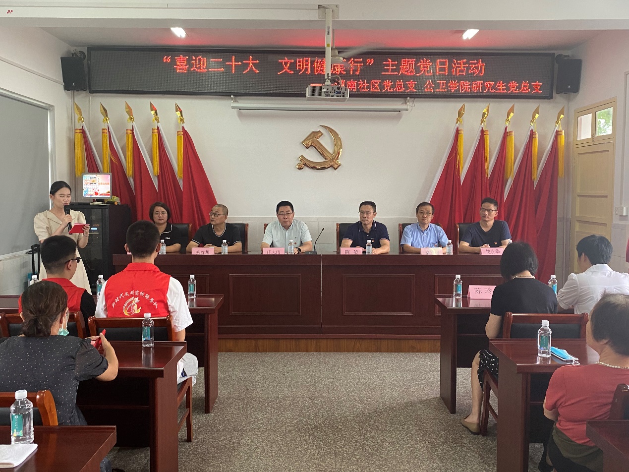 公共卫生学院党委书记陈赞表示,在党的二十大即将召开之际,推进基层公共卫生服务是一项重要工作,希望公共卫生学院研究生党支部能够利用好地域优势、专业优势,发挥党员志愿服务精神,让党建引领工作做细、做实、做好。