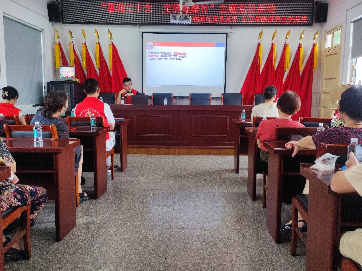 活动现场,公共卫生学院李德明博士、金庭旭博士分别为居民朋友带来《三减三健 健康生活》、《老年人新冠肺炎疫情常态化防控防护》健康知识讲座。由董兴璇同学演唱歌曲《明天会更好》、《好一朵茉莉花》活跃现场气氛;活动最后,由公共卫生学院彭晓琨同学带领居民朋友们一起来到室外共同学习“八段锦”,让健康常相伴。