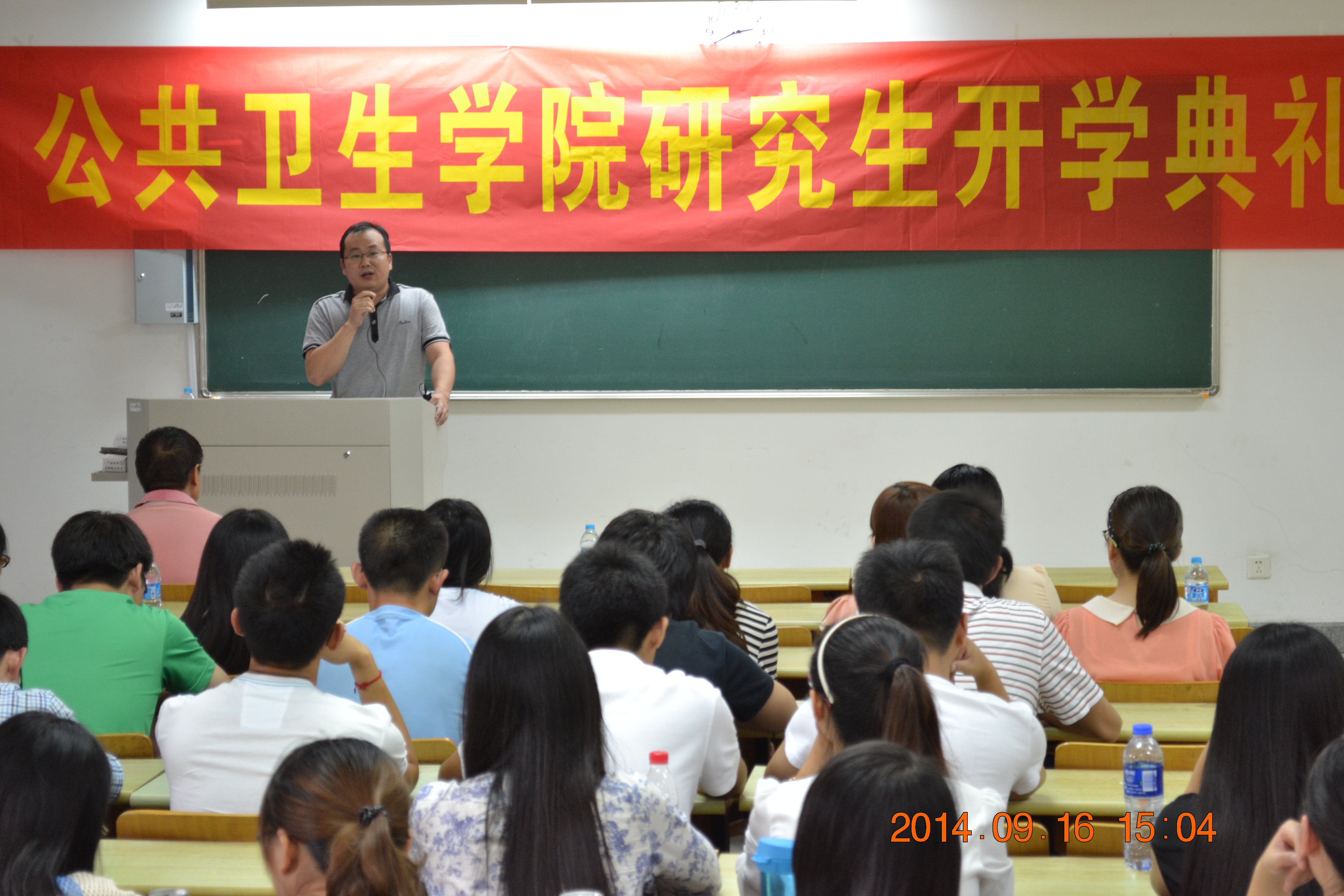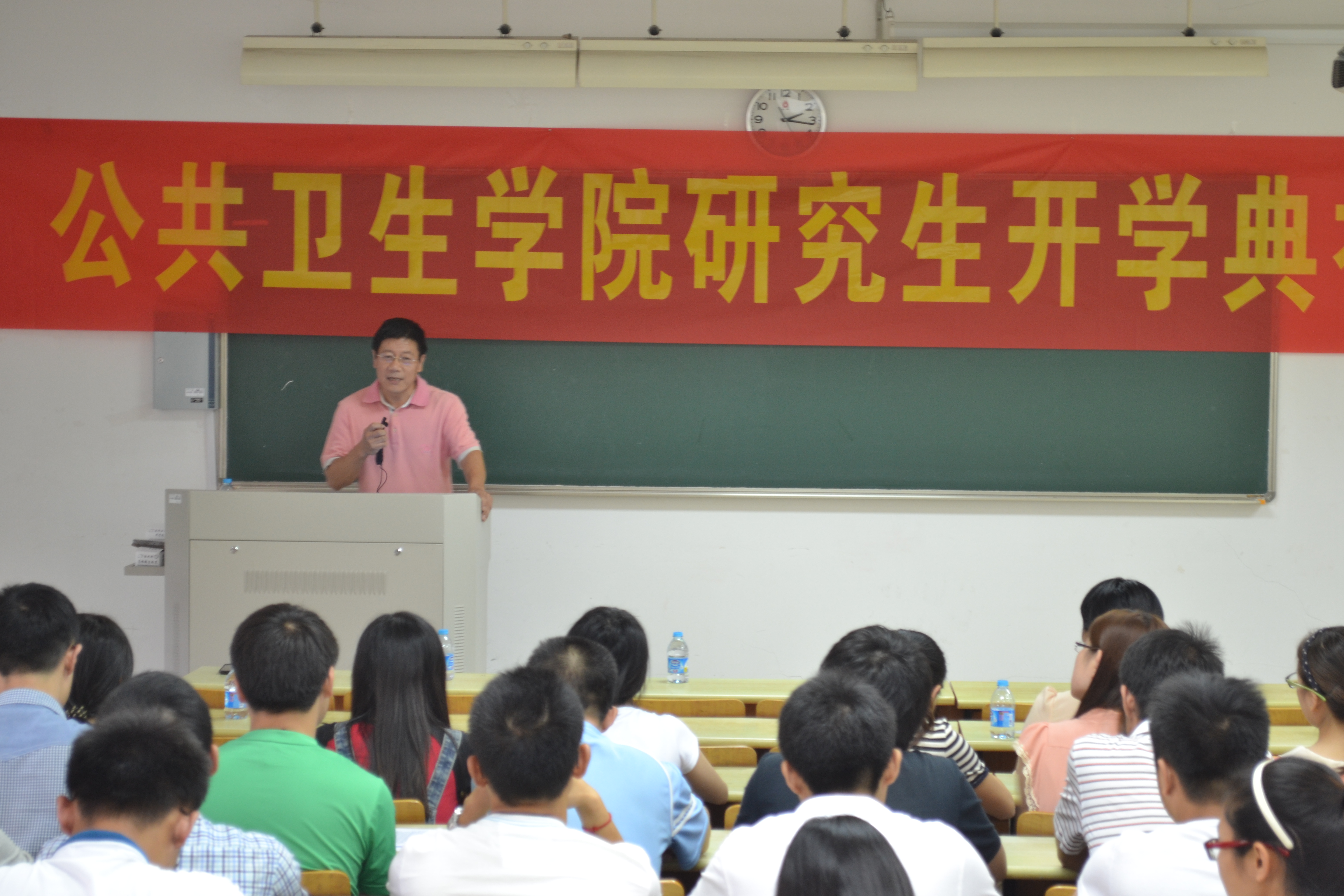 雷署丰特聘教授作为导师代表发言。他首先向我们阐述了预防医学的重要性,鼓励大家要热爱专业,树立信心。之后向全体研究生提出五点希望:一、要有明确的目标,要有好的计划;二、要主动学习,作为研究生要掌握研究型的学习方式;三、要遵守科学道德,严谨求实,不能虚构造假;四、要加强师生间、同学间的沟通和交流;五、要培养研究的素质,掌握研究的方法。