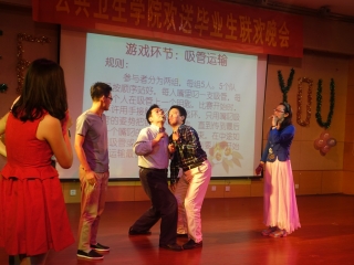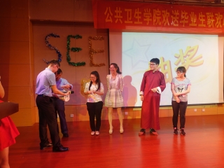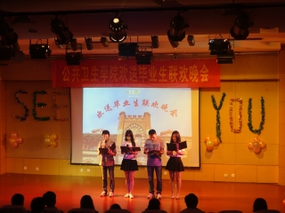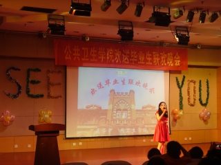 营养与食品卫生学系研究生给我们带来的舞蹈《大王叫我来巡山》正式拉开了晚会的帷幕,欢快而喜悦的节奏立马带动了整个晚会的气氛。遗传流行病与基因组学研究中心的朱晓炜和何培同学给大家合唱了一首《黑白配》,甜美悠扬的歌唱感染了大家,演唱结束之后她们还献上了对毕业生们的良好祝福。研三的梁柱和杨少春为大家表演了一段诙谐逗趣的相声《我叫春哥》,两个人侃侃道来,幽默风趣,引得台下阵阵欢呼和喝彩。2011级预防医学本科毕业生阿瓦古丽·吐尔孙同学婀娜多姿的新疆舞,曾妮美同学清澈纯净的吉他弹唱,无不给现场观众呈现出一场豪华的视听盛宴,晚会也高潮。儿少卫生与社会医学系的女生们给我们带来的扇子舞《咏春》,古典而柔美,张佳玉同学的《千千阙歌》充分展现了她甜美的歌喉,流行病与卫生统计学系的女生们带来的舞蹈《Bangbangbang》更是动感十足,将晚会推进又一个高潮,今天的晚会注定精彩不断!