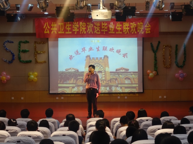 六月的校园处处弥漫着离别与远行的气息。6月7日晚上六点半学院在医学楼四楼报告厅举办了2016年欢送毕业生“青春未央放飞梦想”联欢晚会。学院张永红院长、芮秀文书记等院领导、各系(教研室、中心)负责人以及学院老师、研究生和本科生共 130余人济济一堂,参加了此次晚会。