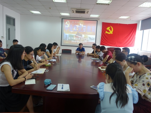为了强化对毕业生党员的教育,提高党员的党性意识,学院于2016年6月16日上午10点在杏林会议室举行党员教育系列活动。学院党委书记芮秀文老师出席活动并讲话。