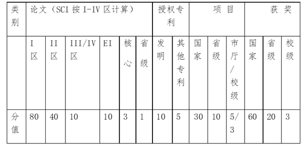 2)发表I、II区SCI论文排名前三位作者计分方法按0.6、0.3、0.1比例计算;如前两位为共同第一作者,按0.45、0.45、0.1比例计算;前三位为共同第一作者,按1/3、1/3、1/3比例计算。Nature Index中杂志论文等同于I区SCI论文;