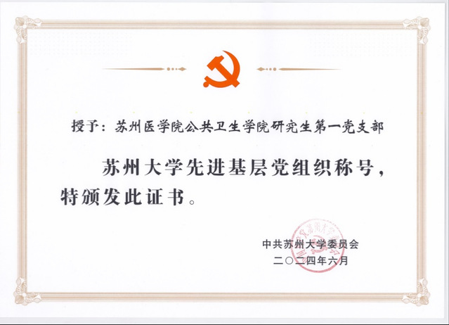 研究生第一党支部事迹介绍:苏州大学公共卫生学院研究生第一党支部共有党员44人。由张楠担任党支部书记,汤栋梁担任党支部副书记,张佳煜担任组织委员,刘霄担任纪律委员,罗雨凤担任宣传委员。学院党委指导支部建立了组织保障、制度保障和评价保障“三维三级”工作机制,有效对标支部建设工作提质增效。支部党员以建设健康中国为己任,在疫情防控、科普宣传等公共卫生事业中贡献了大量有生力量。支部全体党员均参与校内外志愿服务,尤其在疫情期间共计支援了苏州市区及周边疾控累计时长超2万小时。支部党员曾获全国无偿献血贡献奖银奖、苏州大学抗疫之星、全国大学生健康科普大赛优秀奖、朱敬文奖学金、省三好学生等等。支部博士生党员牛犇同学代领的“星火卫光”实践团荣获2022年度苏州大学优秀青年志愿服务组织、2023年苏州大学生暑期社会实践先进集体。