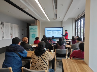 校外主要分为八段锦教学、健康科普讲座两个互动环节。党员志愿者现场向参与的桃花坞社区居民进行了详细的八段锦动作分解介绍。在志愿者们的全程示范下,居民们完整地完成了一套八段锦气功练习。对于练习过程中有困惑的老年人居民,现场志愿者也进行了答疑指导。八段锦教学活动结束后,志愿者们向居民发放了健康科普宣传单,我院博士研究生党员牛犇围绕慢性病和营养膳食等居民关心的相关健康话题展开了详细的介绍,让居民们进一步了解健康生活的重要性。