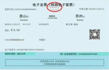 抬头:苏州大学 统一社会信用代码:123200004660073435 如您不小心将电子发票抬头开成了个人,可以按规定申请换开电子发票(限1次)。 3.乘车日期在2025年9月30日前且领取纸质火车票的,纸质火车票仍可以报销。纸质火车票与电子发票只报其一。 更多信息及开票要求详见:https://www.gov.cn/zhengce/zhengceku/202410/content_6981415.htm 特此通知! 请相互转告。 | |||||