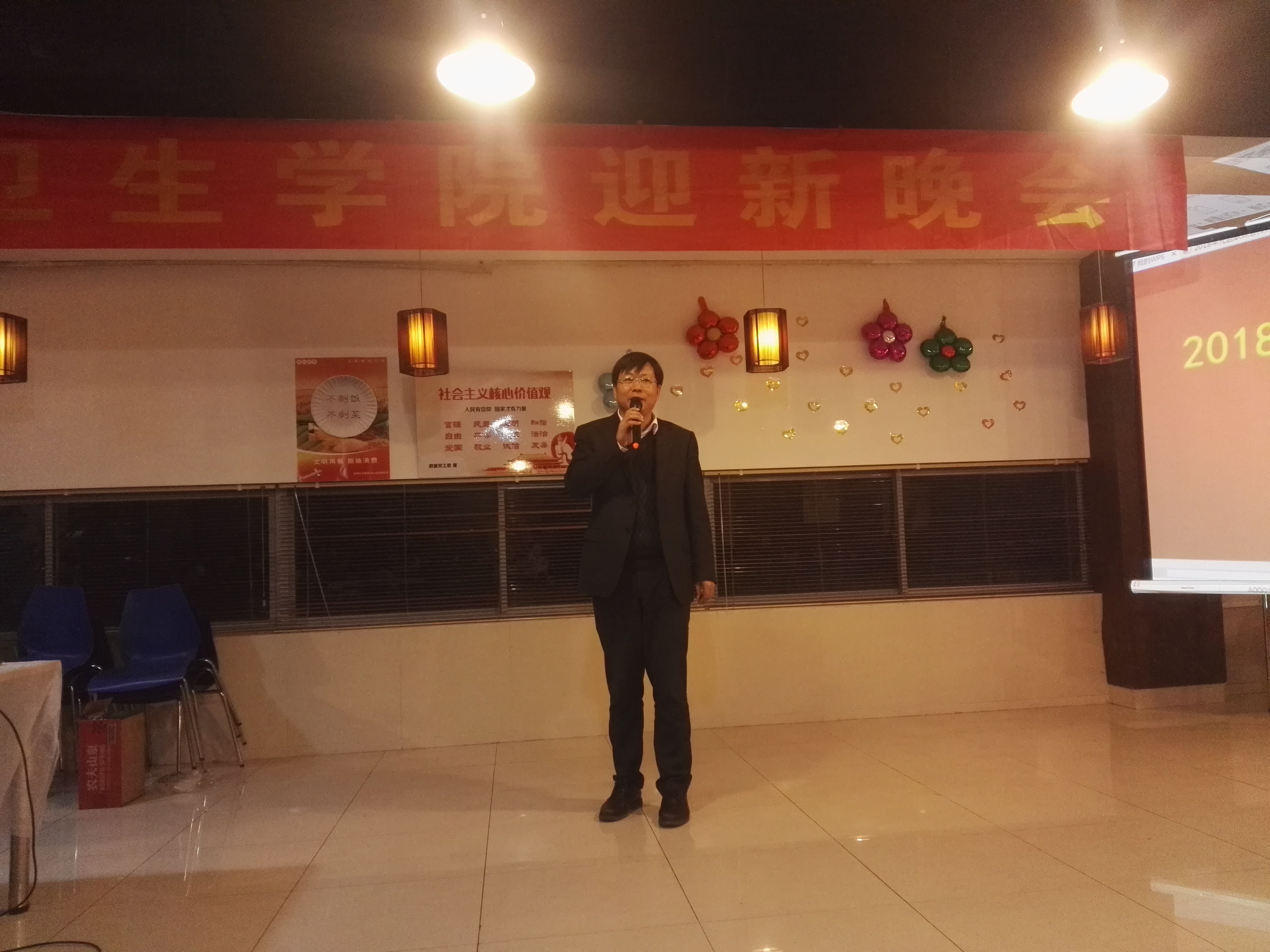 为了迎接2018新年的到来,12月27日晚6点30分,由院工会、学生工作办公室、研究生会、研究生党总支和研究生团支部共同举办的师生迎新年联欢晚会在独墅湖校区教职工食堂二楼隆重举行。学院张永红院长、芮秀文书记、张增利副院长、各系教师代表,班主任代表以及预防医学研究生、本科生参加了此次联欢晚会。