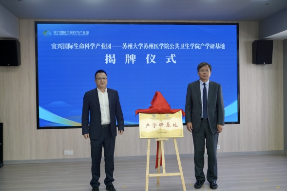 10月29日,我院与宜兴国际生命科学产业园产学研基地揭牌仪式在宜兴市举行。江苏省财政厅税政处副处长、无锡市生物医药产业科技镇长团团长马涵彬,宜兴市人民政府副市长杨中浩,宜兴市人民政府副市长、环科园管理办副主任周雪强、学院党委书记芮秀文等出席仪式。该基地的成立是校地资源共享、优势互补的共赢举措,学院将以此为纽带,在人才协同培养、平台共建共享、科研联合攻关等方面持续推进产教融合,共同探索校企协同育人、双向赋能的新路径。