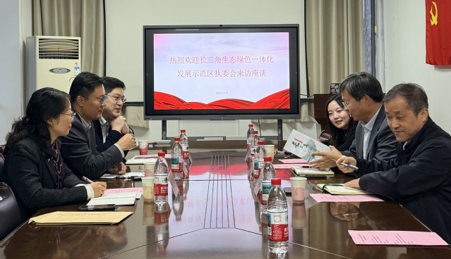 11月4日,长三角一体化示范区执委会公共服务和社会发展部一行到学院调研。学院党委书记芮秀文、副院长秦立强分别围绕学院总体建设、科研发展布局等情况作详细介绍,双方聚焦产学研协同创新、成果转化路径等展开深入研讨。