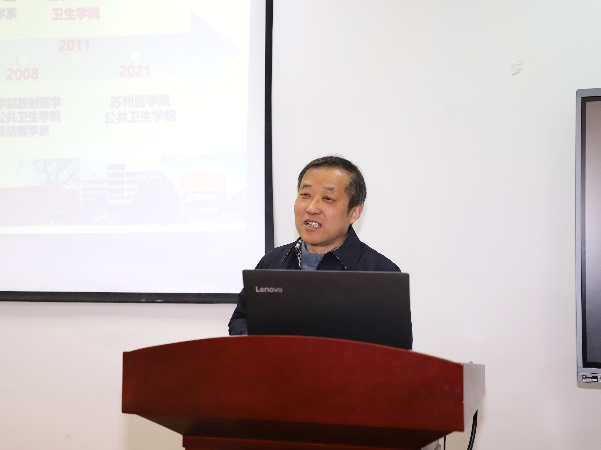 薛爱龙主任回顾了疾控中心自1953年成立防疫站以来的发展历程,介绍了疾控中心今年在人才队伍建设、重点项目建设、公共卫生服务等方面的工作成效。同时,他还特别回顾了学院彭浩教授挂职期间的工作成果,对其在疾控中心的履职表现和贡献给予高度肯定。薛爱龙主任表示,区卫健委已将与高校深化合作列为重点工作,明确支持疾控中心与苏州大学公共卫生学院共建非直属附属疾控中心,通过机制化建设推动合作落地见效,共同提升区域公共卫生服务能力。