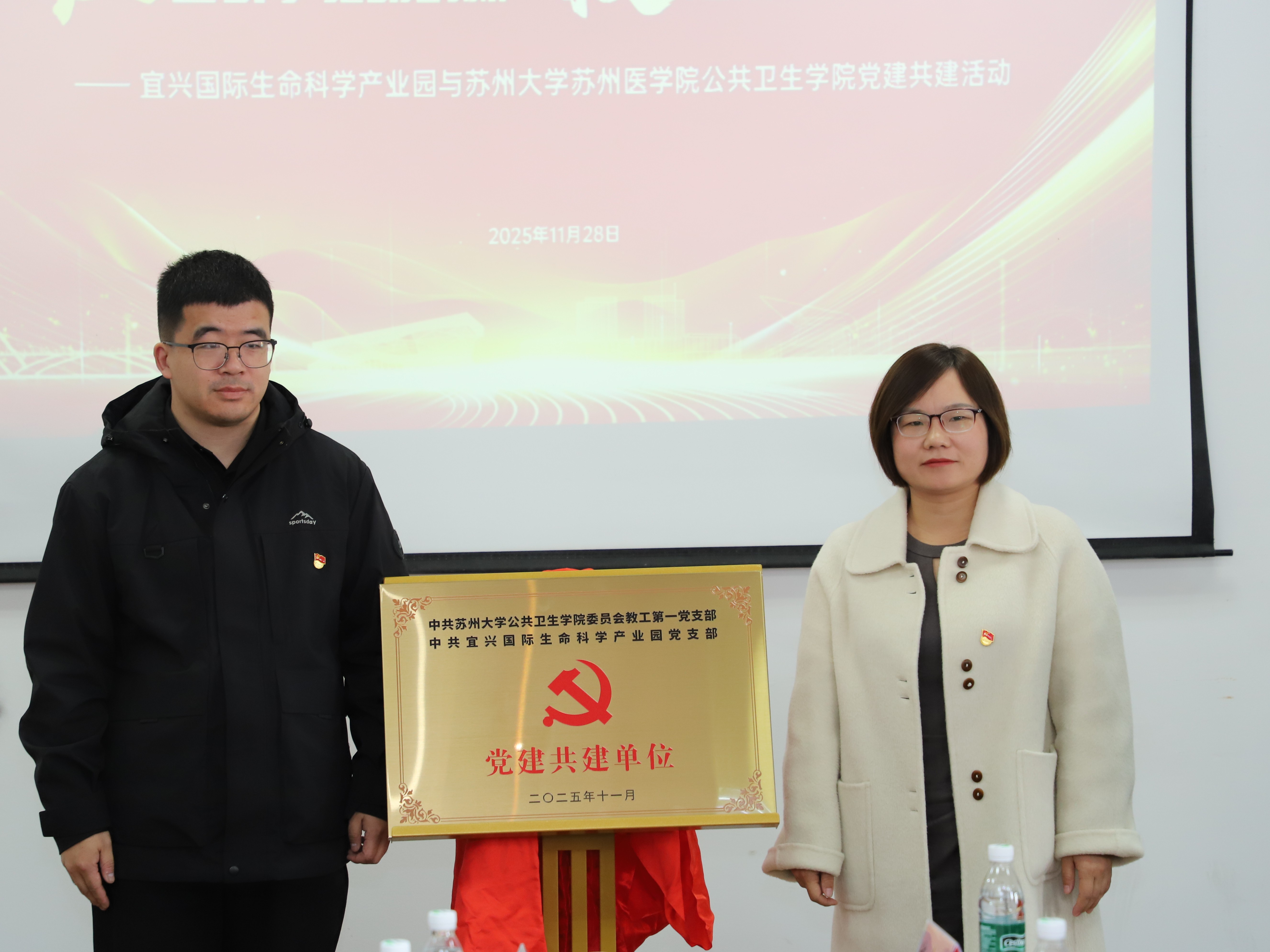 “红色引擎驱动创新,校地携手共谱新篇”——苏州大学苏州医学院公共卫生学院与宜兴国际生命科学产业园党建共建活动顺利举办