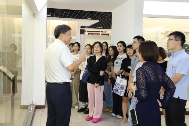 随后,师生继续参观了校本部图书馆专题展《正义之剑的执柄者:战后对日本战犯审判中的东吴先贤》。展览系统展示了东吴校友在远东国际军事法庭(东京审判),以及国内上海、沈阳等地军事法庭审判中所作的杰出贡献。从法律准备、罪行调查,至法庭辩论与裁决,东吴人以法治之力伸张正义,捍卫了历史真相与人类良知。