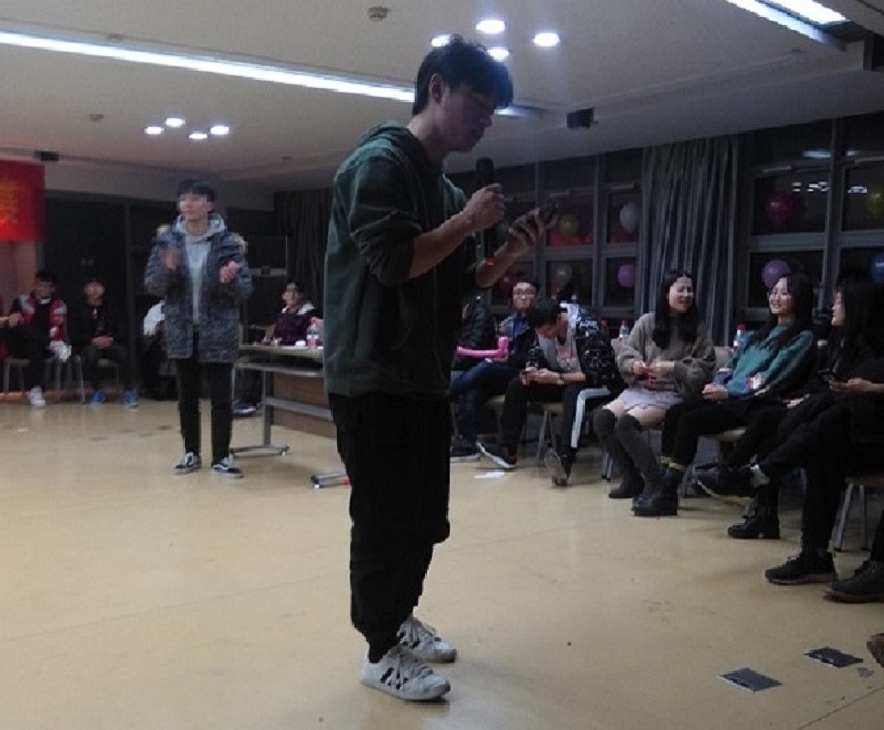 牌艺比赛之后,紧接着便是精彩的游戏环节。首先登场的是听歌识曲环节,在抢到现场中心的筛鼓之后马上说出歌名组加一分,能唱出再加一分。大家争先空后,不肯落后,祝同学等麦霸各展歌喉,得分不断。然后是萝卜蹲游戏,每组取一个水果名,组内有说错名字者淘汰,留到最终组获胜。还有模特扮演游戏,对一个同学装扮,身上装饰品最多组获胜,并对每轮最终胜出者提供了精美奖品。