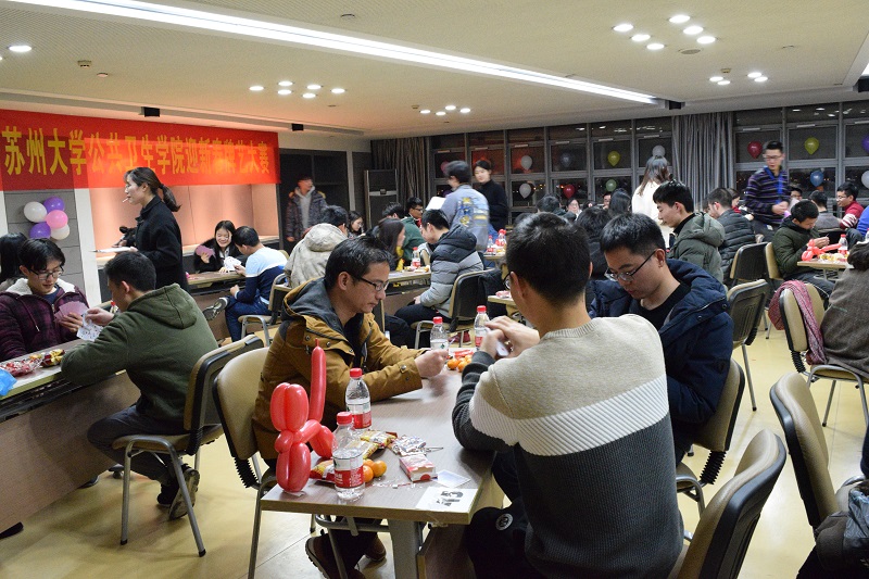 欢声笑语,共迎新年。为迎接2019年新年的到来,12月28日晚,由公共卫生学院在独墅湖校区炳麟图书馆720室举行——“益智牌艺,喜迎元旦”牌艺大赛。学院党委书记芮秀文老师,第二教工党支部书记汤在祥老师,院综合办副主任饶永华老师,院学工办主任、2018级研究生班主任朱行星老师、2018级预防医学本科生班主任仲崇科老师以及预防医学研究生、本科生参加了此次联欢晚会。