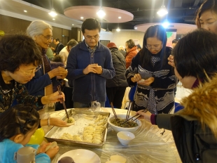 文艺节目结束之后全院老师一起动手包饺子,吃饺子,充分展示了我院团圆、和谐的完美氛围!在新的一年里全院上下也将深入贯彻创新、协调、绿色、开放、共享的发展理念,促进学院更好、更快发展,共享发展新成果!
