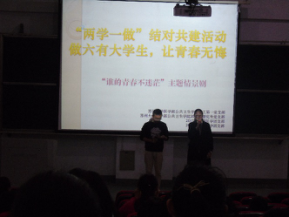 “两学一做”结对共建活动:“做六有大学生,让青春无悔”主题情景剧