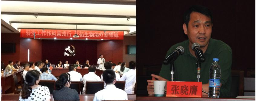 同时与常州一院内科第二党支部共同开展“转变工作作风常州行•开拓生物治疗新领域”交流活动。常州第一人民医院肿瘤生物治疗中心主任,党支部书记蒋敬庭教授用PPT介绍了内二支部所开展的活动和优秀事迹:如举办道德讲堂、义诊活动,关心年轻人的成长(与苏大联合培养研究生、联合申报课题、派年轻人出国深造等)。