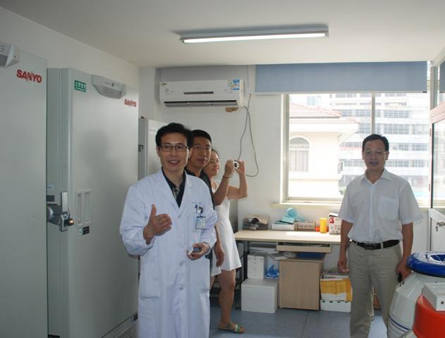 参观实验室:肿瘤生物治疗中心蒋敬庭主任向客人介绍肿瘤标本库
