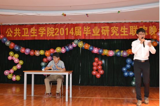 2014年6月12日晚6点,我院2014届毕业研究生联欢晚会在医学楼三楼活动厅隆重举行。学院党委副书记芮秀文老师、副院长徐勇老师、各系室主任、导师代表、全体毕业研究生以及低年级研究生同学和预防医学本科生参加了本次联欢晚会。