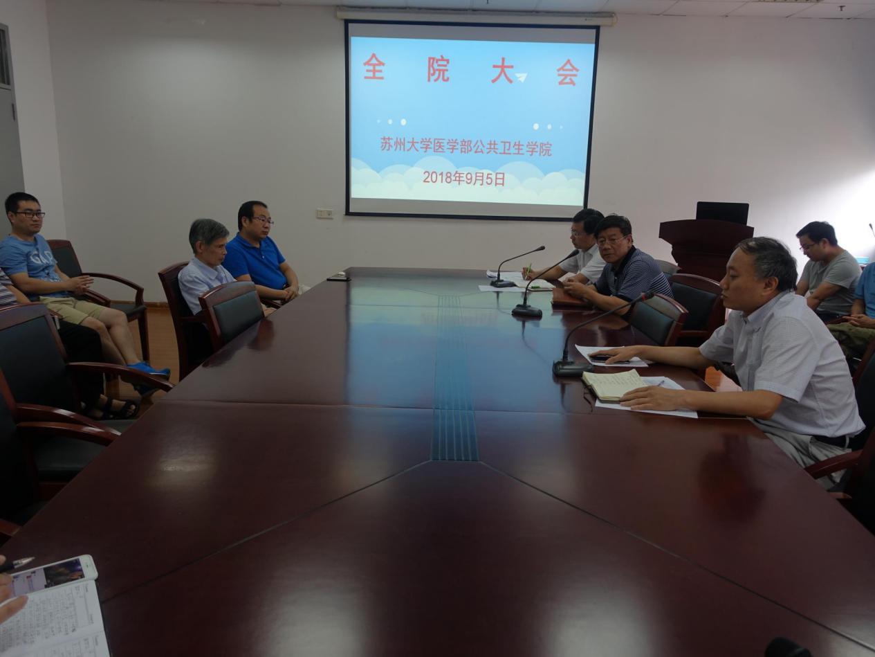 三位院领导随后对本学期的主要工作进行了布置:1)积极组织好省大学生健康素养大赛;2)做好江苏省老年病预防与转化医学重点实验室的工作开展及检查验收;3)健康中国研究院工作的开展;4)召开教代会研讨社会工作量;5)2019年国自然基金申报工作;6)学校一流本科专业和一流教学团队申报工作;7)人才引进尤其是标签人才引进工作;8)贯彻落实以本为本、“四个回归”,做好本科教学工作,在保证教学秩序的基础上加强师德师风建设、专业建设、培养体系建设和课程建设,改进实践教学等。在会议上学院领导还对研究生导师上岗政策进行了解释,本次政策的制定是为了落实学校的有关要求而进行的,在政策的制定过程中学院严格按照要求进行了多次讨论和意见征求。