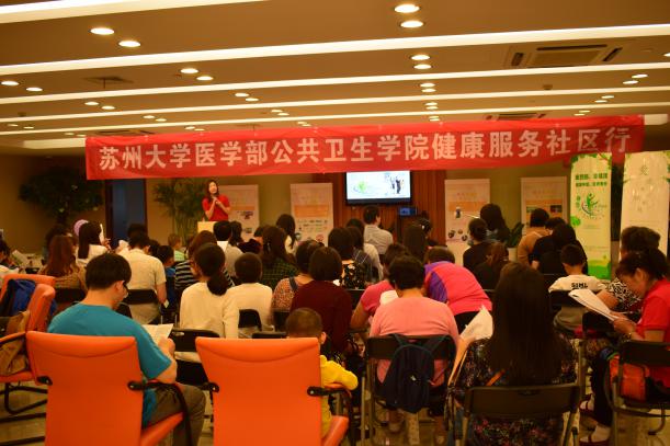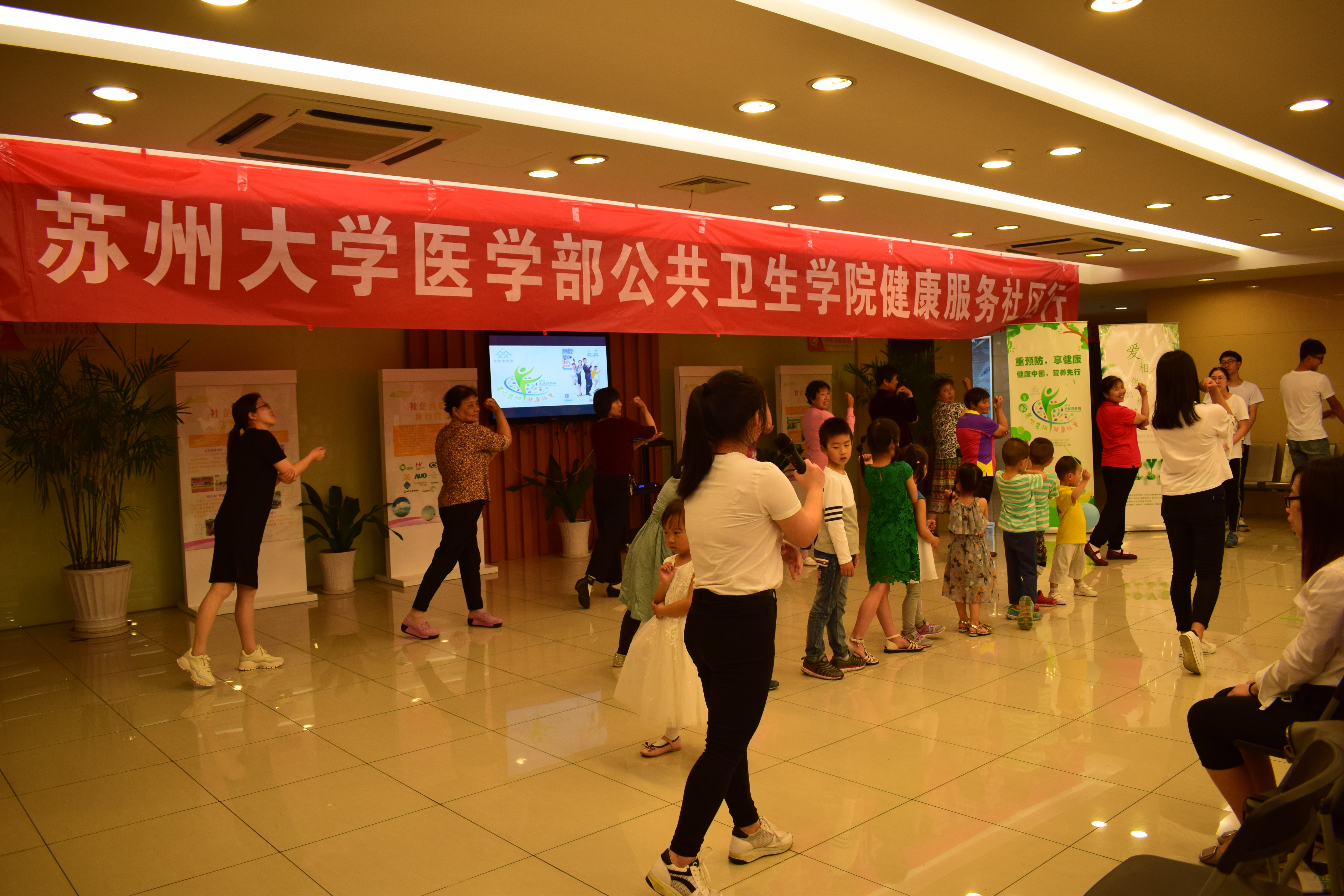 为了响应党的十九大提出实施健康中国战略的号召,积极发挥高校的社会服务功能,同时也是作为加入方洲党建联盟后的一项合作共建活动,由学院与大学生心理健康教育研究中心、苏州市儿童医院、苏州市广播电视总台、金鸡湖社区联合主办,学院各党支部和团支部承办的党员师生健康服务社区行活动于2018年5月13日下午在金鸡湖社区开展,学校党委组织部袁洁老师和学院党委芮秀文书记到场指导。