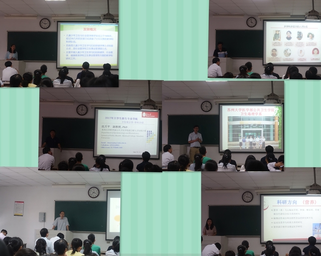 根据学校和学部的迎新工作要求,学院于9月12日下午2点在独墅湖校区1003#3103教室举行2017级预防医学本科生开学典礼暨专业介绍、“新生入学第一课”,学院芮秀文书记、张增利副院长、新生班主任武婧博士及各系负责人参加了此次活动,活动由学院学工办饶永华老师主持。