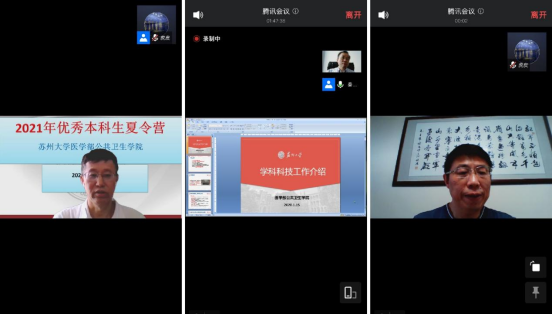 张增利院长首先带领营员们“云参观”了美丽的苏州与苏州大学,为营员们介绍了学校悠久的历史和研究生教育的发展历程,以及学院各学科的研究生招生方向。秦立强副院长介绍了我院的发展历史、现状和学科科技工作,展示了学院雄厚的师资力量、完善的学科设置和领先的人才储备,并欢迎大家报考苏大公卫。李建祥教授介绍了学院为吸引优质研究生生源所制定的相关招生政策,并热烈欢迎各位同学的到来。