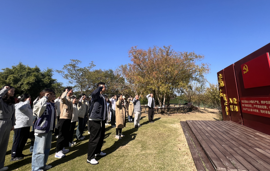 活动最后,在张楠、朱行星老师带领下,队伍一行来到党旗面前,全体党员重温了入党誓词。铿锵有力的誓言,声声回荡,震撼人心,宣示着党员们对党的庄严承诺和坚定信仰。